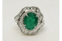 PLATINUM EMERALD AND DIAMOND RING Condition :...