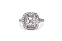 GIA 18CT WHITE GOLD EMERALD CUT DIAMOND HALO RING...