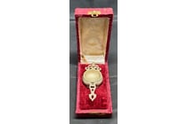 SILVER TONED TEA LEAF STRAINER Item Size:...