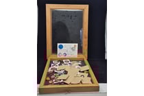 DON BRADMAN TIN WITH POST CARD, STAMPS,...