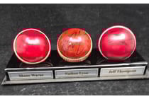 TRIO OF CRICKET BALLS SIGNED BY PAT CUMMINS, JOSH...