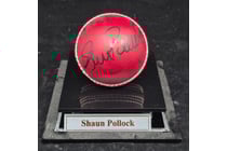 CRICKET BALL SHAUN POLLOCK SIGNED RED BALL +...