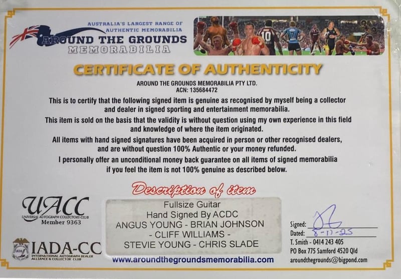 ANGUS YOUNG, BRIAN JOHNSON , CLIFF WILLIAMS, STEVIE YOUNG & CHRIS SLADE (AC/DC) PERSONALLY SIGNED GUITAR
