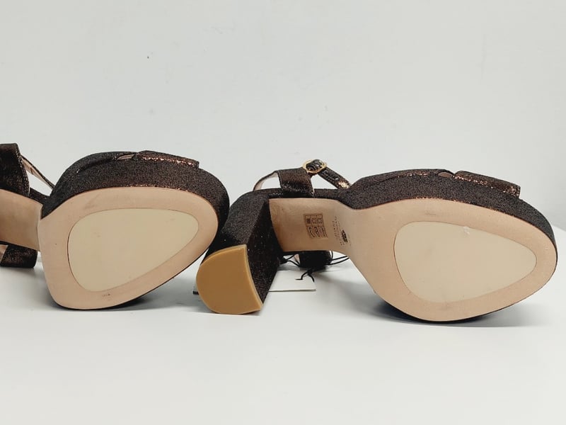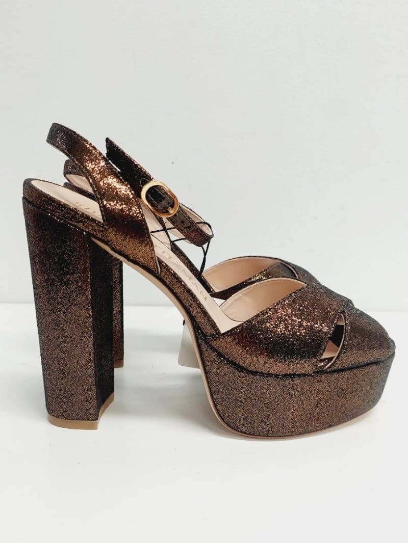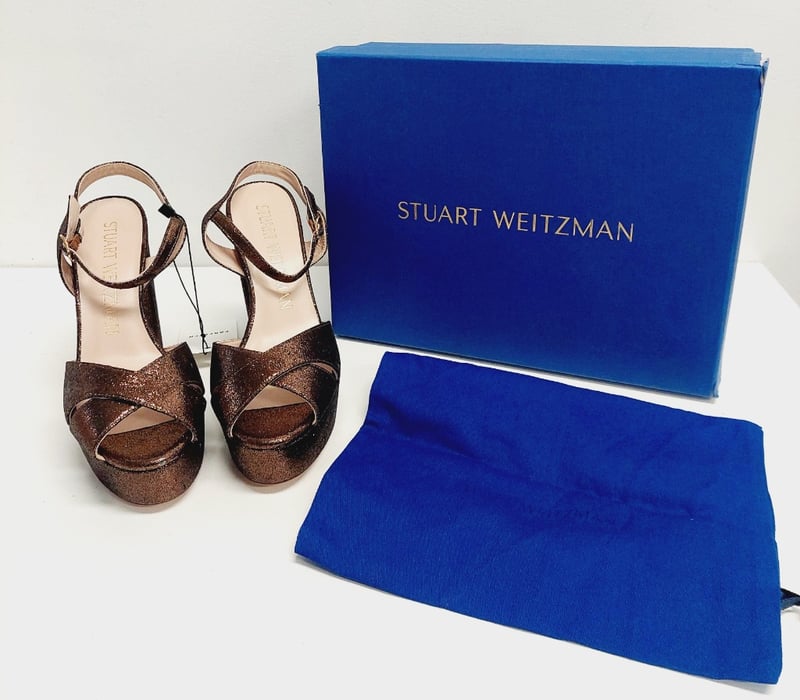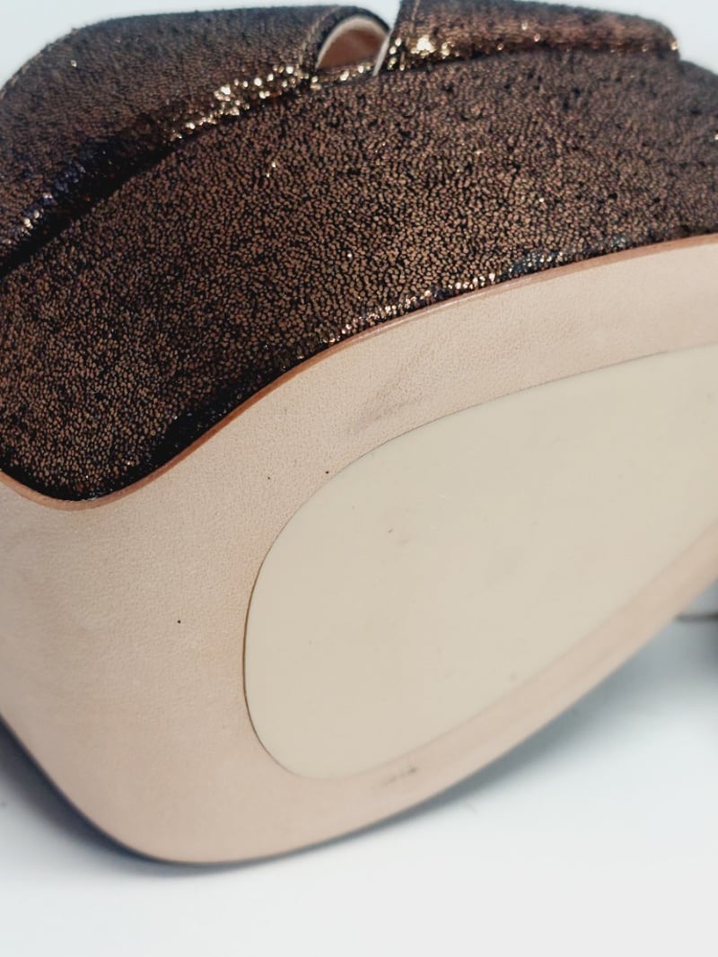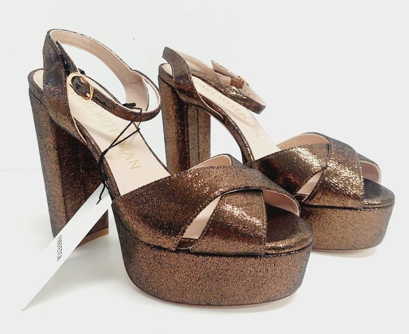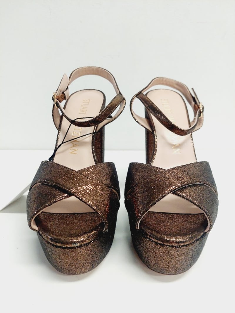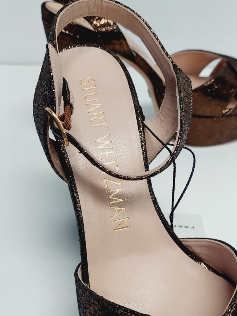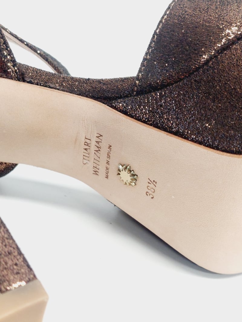 STUART WEITZMAN SOLIESSE GLITTER BRONZE HEELS