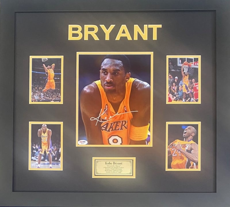 KOBE BRYANT PERSOANLLY SIGNED 10" X 8" PHOTOGRAPH (PSA/DNA COA)Item Size: Height: 63cm, Width: 2cm, Depth: 57cm, Weight: 5Kg"Framed Using Double Mats, 4 Unsigned Photographs And A Plaque. Hand Signed By Kobe Bryant Using A Silver MarkerAccompanied By A Certificate Of Authenticity From Psa/Dna"Condition: Good - Refer To ImagesCROSSDOCK488401+10