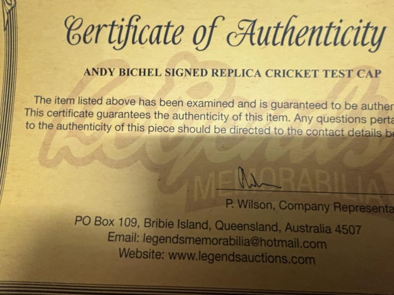 Andy Bichel Personally Signed Replica Baggy Green Cricket Cap. The Item Is Accompanied By A Certificate Of Authenticity.