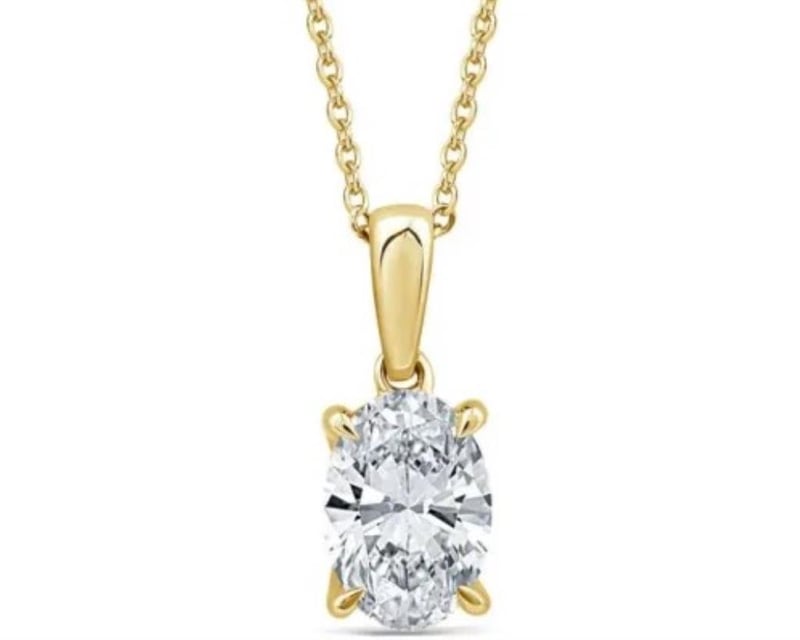 9K YELLOW GOLD 1.00CT F VS LAB DIAMOND OVAL NECKLACE 40-45CM