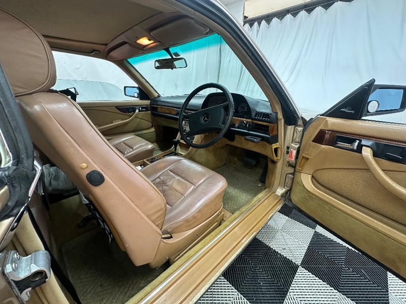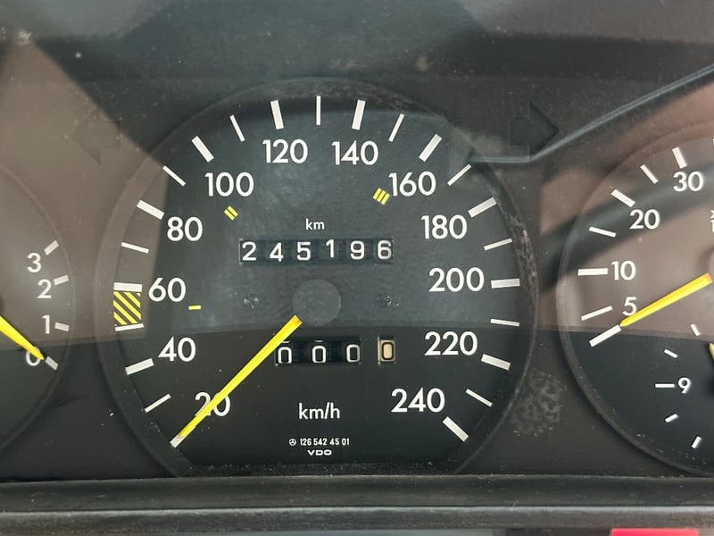 A classic W126-series Mercedes-Benz sedan finished in Champagne, showing an indicated 245,196 km. Powered by a 3.8-litre petrol engine paired with a 4-speed automatic transmission, this model reflects the comfort and refinement typical of Mercedes-Benz luxury sedans of the early 1980s.