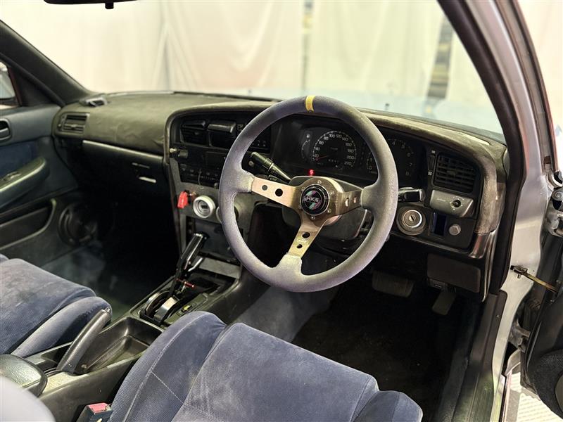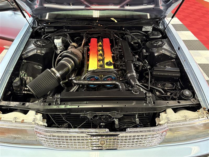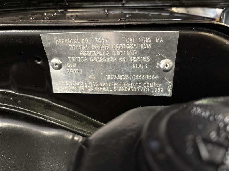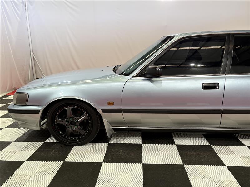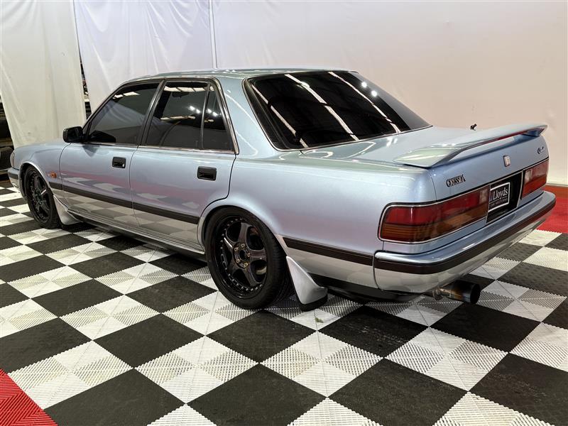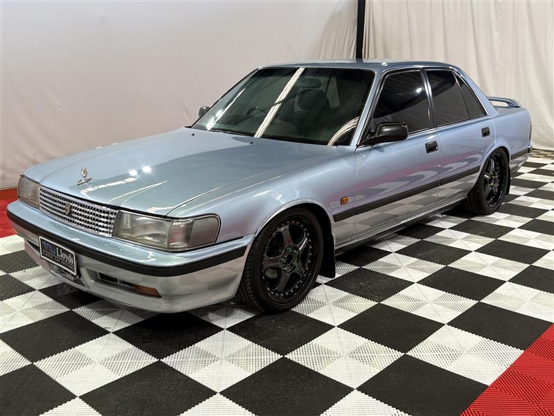 A six-cylinder Japanese sedan finished in Blue and Silver, showing an indicated 204,615 km. Powered by a 3.0-litre turbocharged inline-six paired with a 4-speed automatic transmission, this Cressida GLX delivers the smooth performance and comfort that defined Toyota’s premium offerings of the early 1990s.