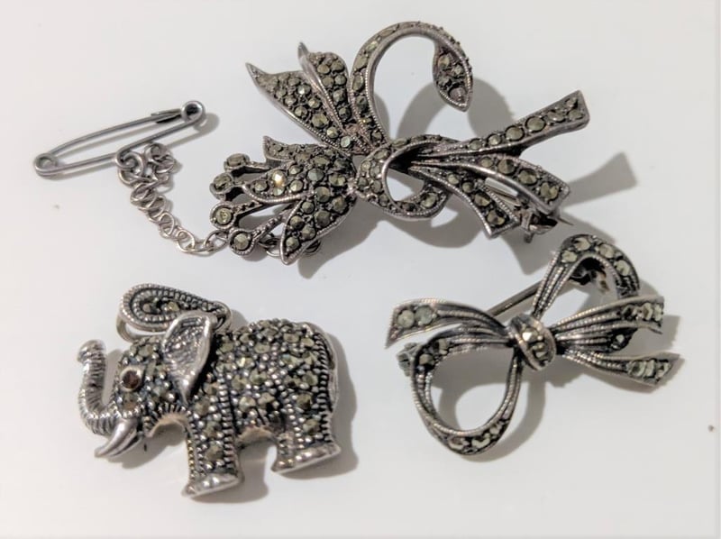 MARCASITE VINTAGE BROOCHES, PENDANT & EARRINGS Most Marked 925 Or Sil Condition: Good - Refer Images 0586312+18