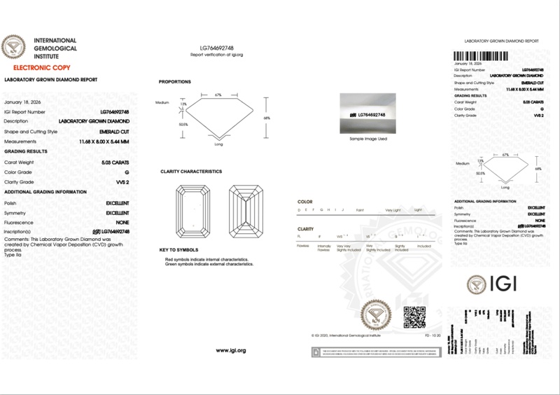 Please note that while all lab grown diamonds listed include certification, the report number or identification may vary upon arrival. This is due to standard manufacturing and batching processes. However, the diamond’s specifications — including carat, color, cut, and clarity — will match or may even exceed those advertised.
