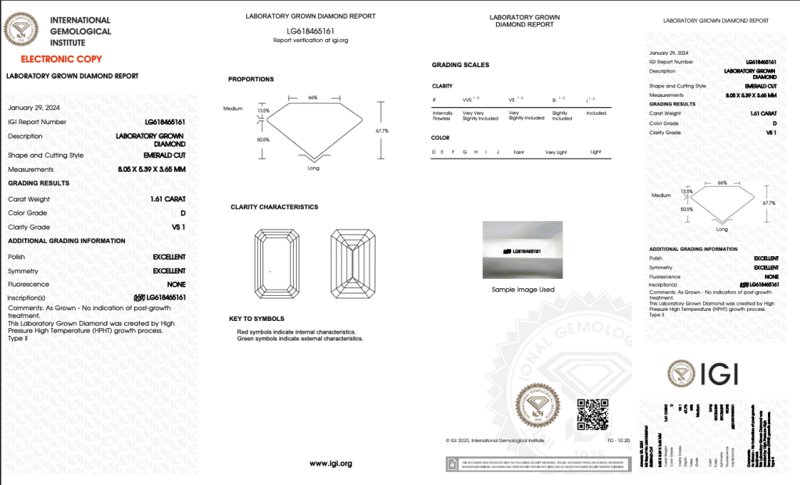 Please note that while all lab grown diamonds listed include certification, the report number or identification may vary upon arrival. This is due to standard manufacturing and batching processes. However, the diamond’s specifications — including carat, color, cut, and clarity — will match or may even exceed those advertised.