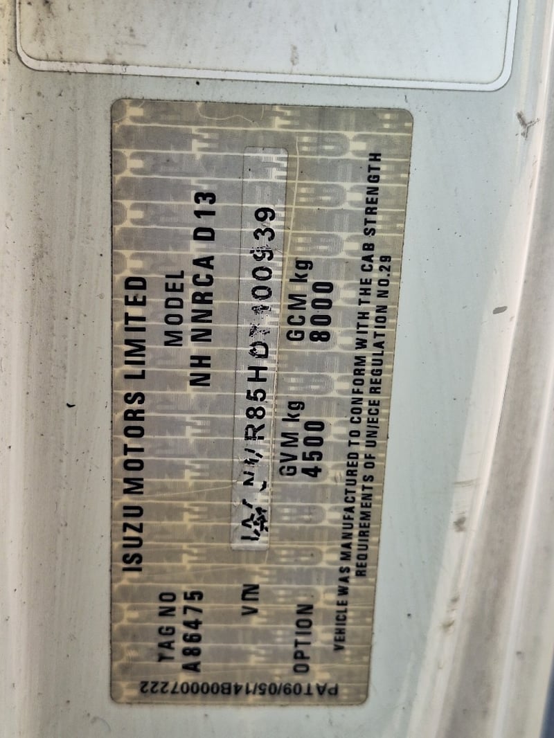 Engine No: 4JJ11T3242 (as per ppsr)