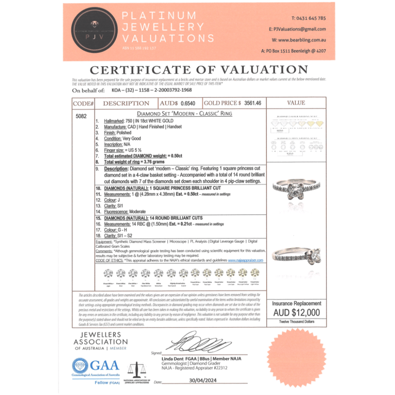 This valuation has been conducted by an independent third-party professional. The valuation amount is an assessment by the issuing valuer and does not reflect the auction value of the item.