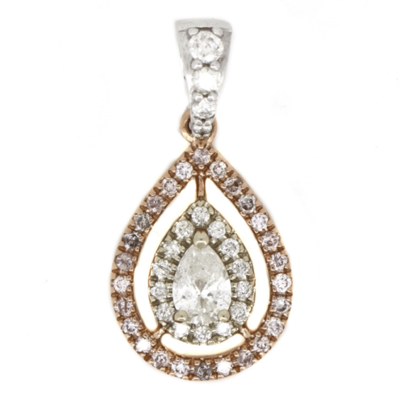 The Design Features, One Pear Modified Brilliant Cut, Diamond (0.18Ct, H-Colour, Si2-Clarity), 3 Claw Basket Set. Surrounding The Centre In The Inner Halo And Decorating The Bail Are, 18 Round Brilliant Cut, Diamonds (0.13Ct Tdw, H-J Colour, Si-I1 Clarity), Micro-Claw Set. Surrounding The Centre In An Outer Halo Are 26 Round Brilliant Cut, Fancy Light Pink, Diamonds (0.12Ct Tdw, Si-I1 Clarity), Pip-Claw Set.