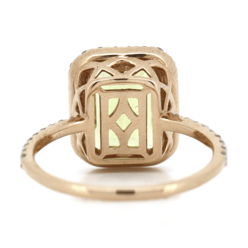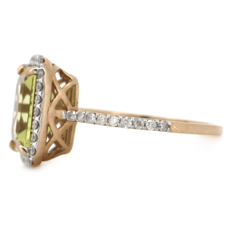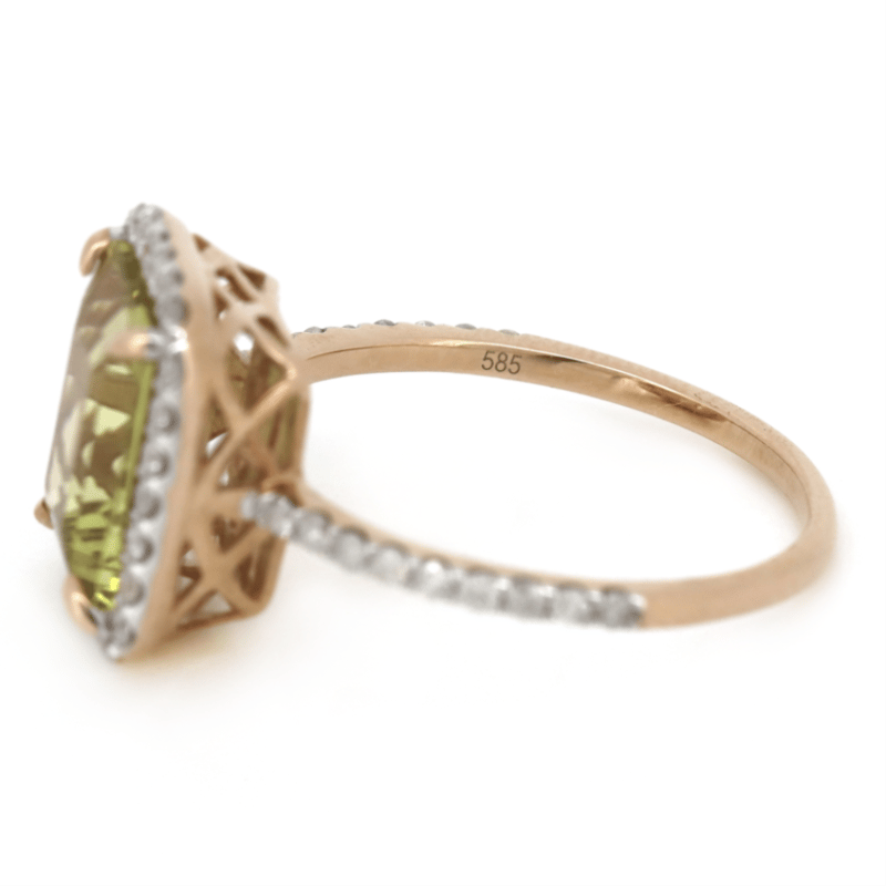 14K ROSE GOLD, HELIODOR AND DIAMOND, HALO RING.