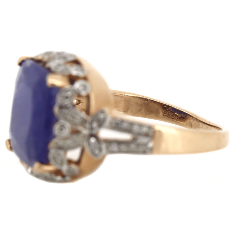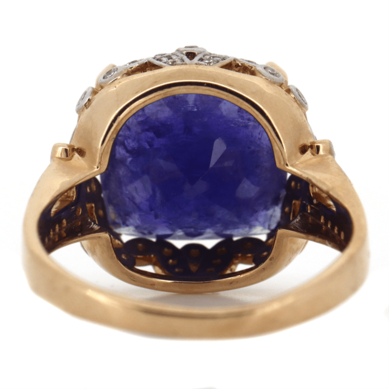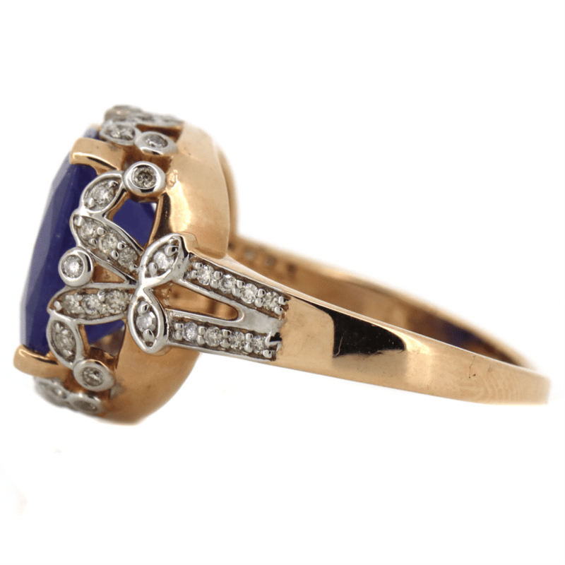 14K ROSE GOLD, TANZANITE AND DIAMOND, COCKTAIL RING.