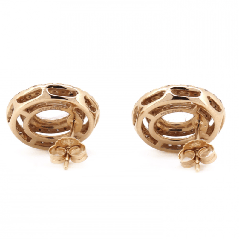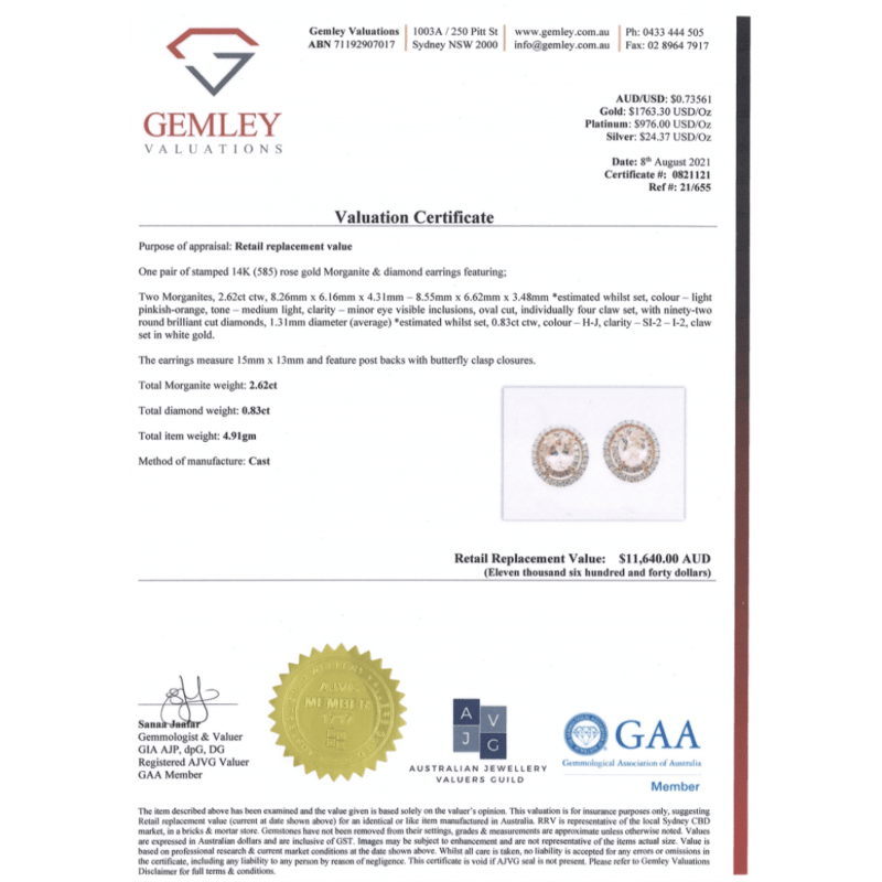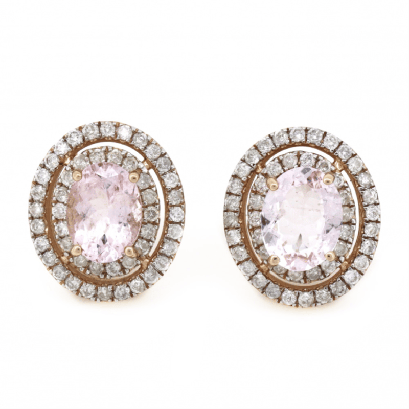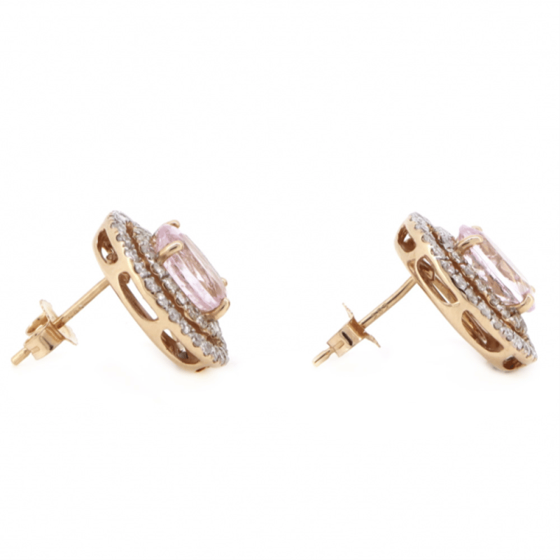 The Centres Feature, 2 Oval Cut, Light Pinkish-Orange, Morganites (2.62Ct Tsw, Minor Eye Visible Inclusions), 4 Claw Set. Surrounding The Centres In Double Halos Are, 92 Round Brilliant Cut, Diamonds (0.83Ct Tdw, H-J Colour, Si2-I2 Clarity), Claw Set In White Gold. The Earrings Have Post Backs With 14K Rose Gold Butterfly Clasps.