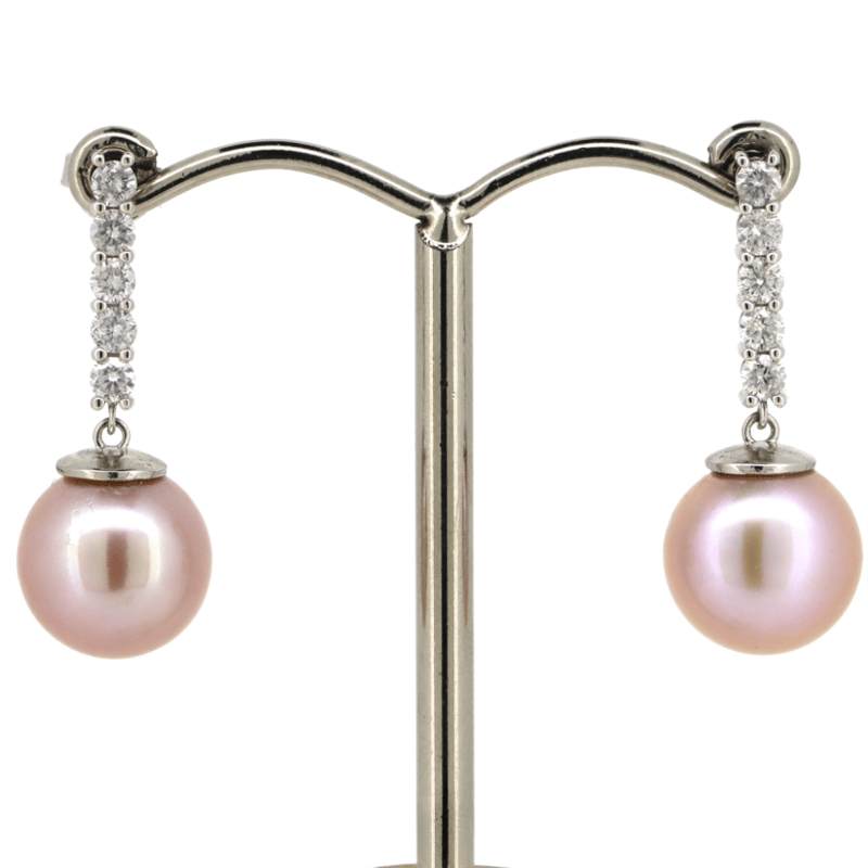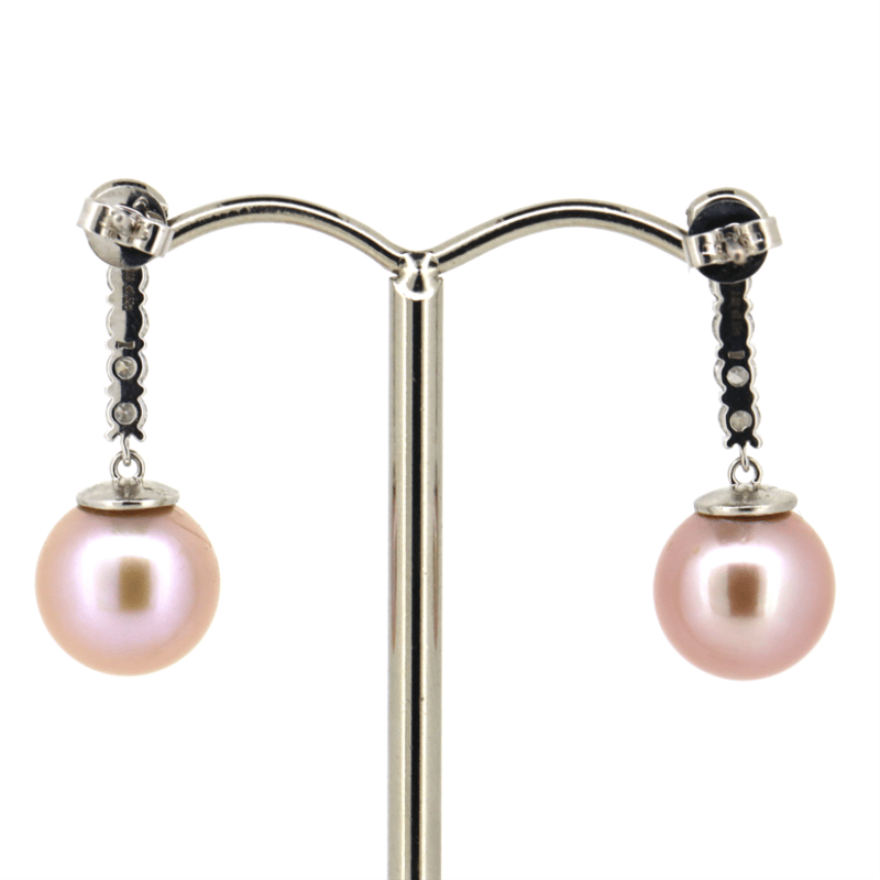 The Earrings Feature, 2 Near Round, Pink South Sea Pearls (10.25Mm X 10.30Mm Size, Lightly Spotted). Decorating The Drops Are, 10 Round Brilliant Cut, Diamonds (0.53Ct Tdw, F-I Colour, Si-I3 Clarity), Micro-Claw Set.