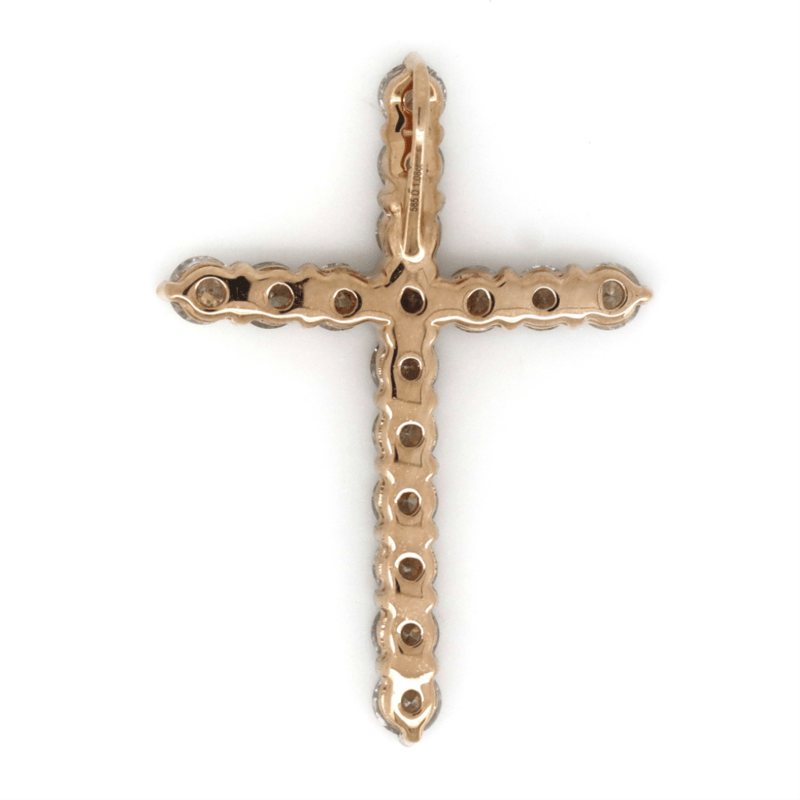 14K ROSE GOLD, 1.08CT TDW DIAMOND, CRUCIFIX PENDANT.