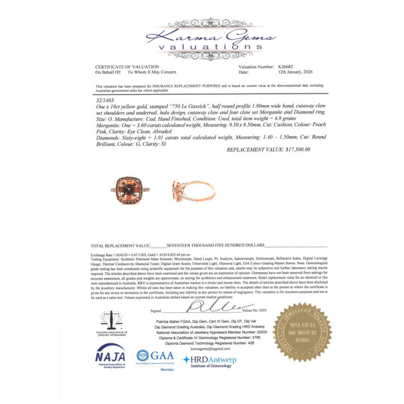 This valuation has been conducted by an independent third-party professional. The valuation amount is an assessment by the issuing valuer and does not reflect the auction value of the item.