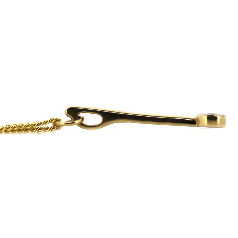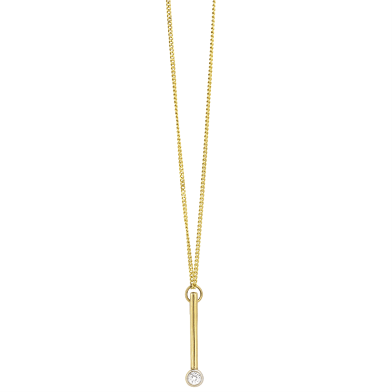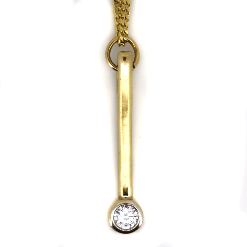 9K YELLOW GOLD AND 0.25CT DIAMANTE, PENDENT NECKLACE.
