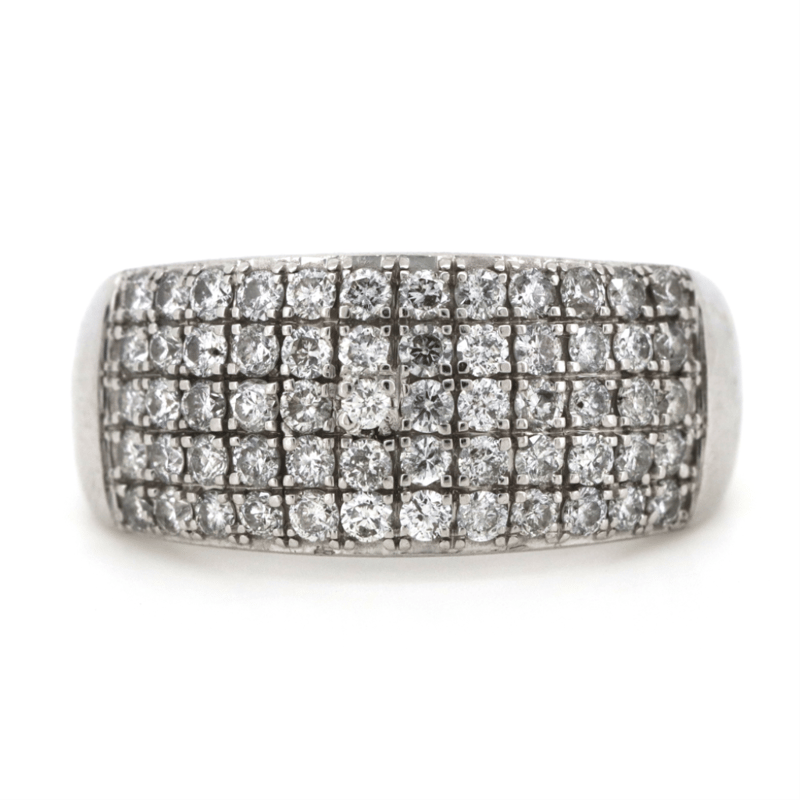The Ring Features, 60 Round Brilliant Cut, Diamonds (1.05Ct Tdw, H-I Colour, Si-I2 Clarity), Bead Set. Ring Size M. Condition: Pre-Owned.