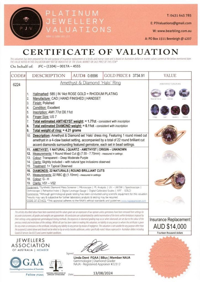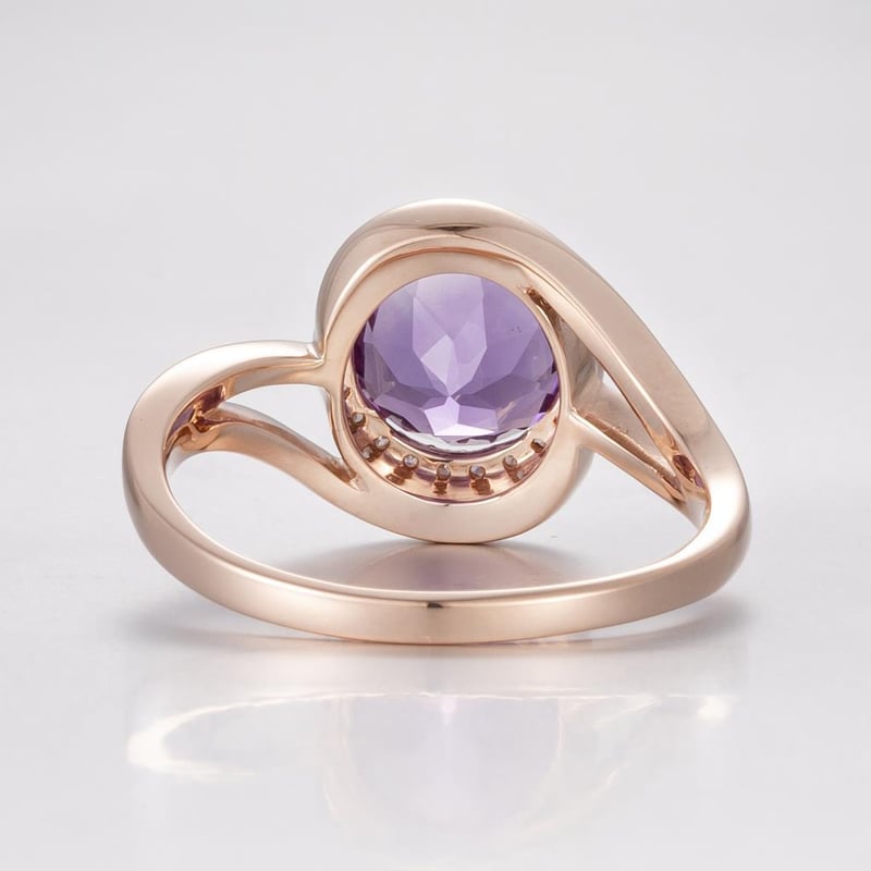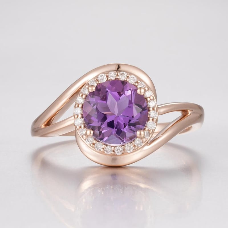 14CT ROSE GOLD AMETHYST AND DIAMOND HALO RING