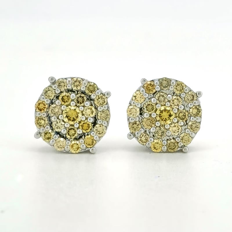 9CT WHITE GOLD FANCY CHAMPAGNE BROWN DIAMOND HALO STUD EARRINGS