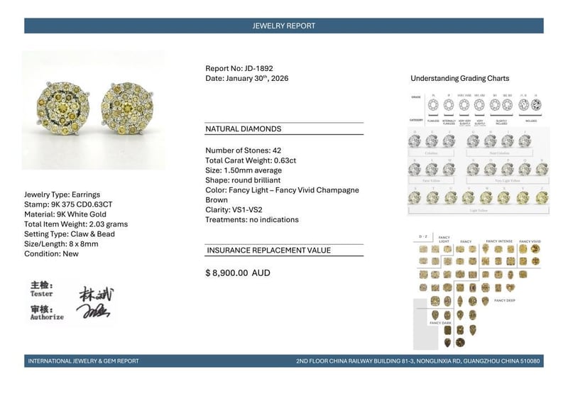 Featuring, 42 Round Brilliant Cut, Fancy Light-Fancy Vivid Champagne Brown Diamonds (0.63Ct Tdw, Vs1-Vs2 Clarity), Claw/Bead Set.