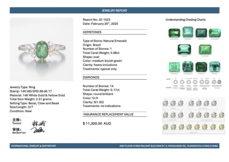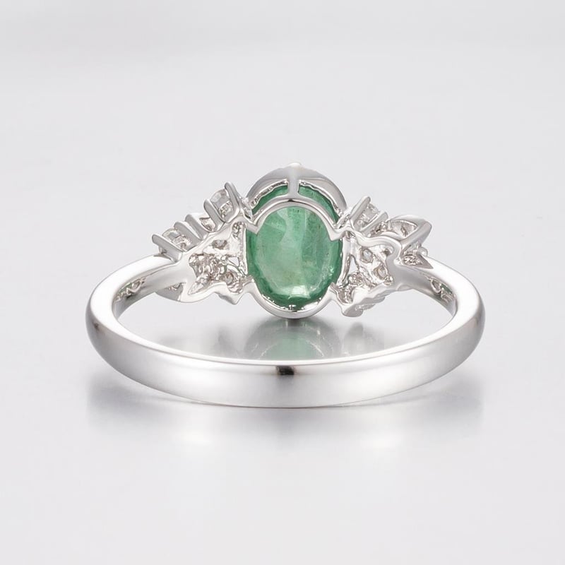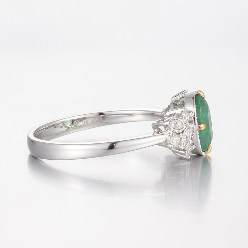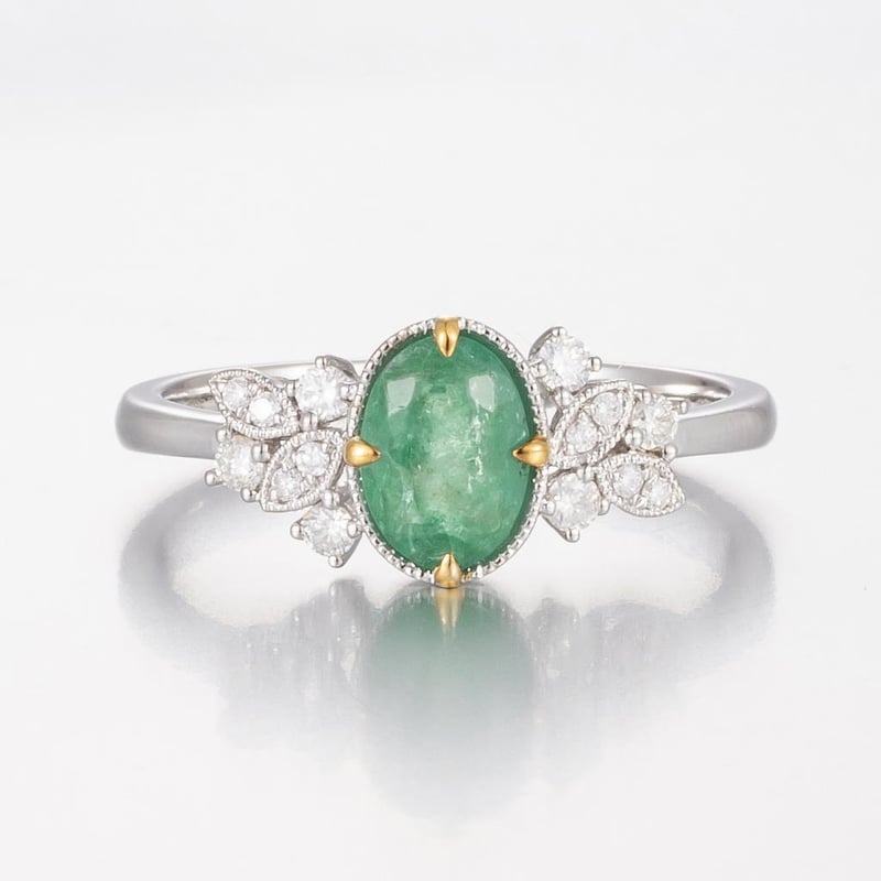 14CT WHITE GOLD BRAZILIAN EMERALD AND DIAMOND ANTIQUE INSPIRED RING