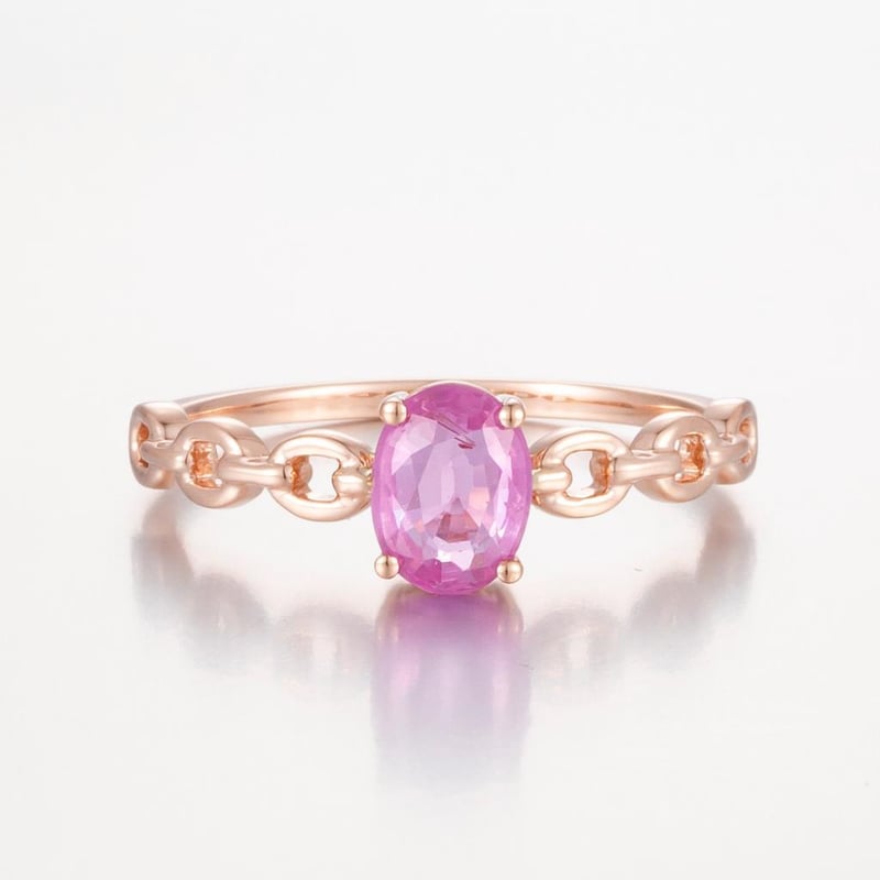 14CT ROSE GOLD PINK CEYLON SAPPHIRE CHAIN STYLE RING