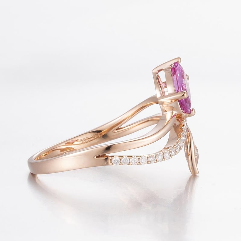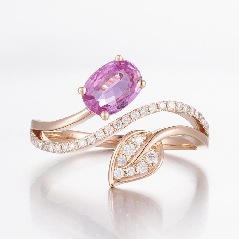 14CT ROSE GOLD PINK CEYLON SAPPHIRE AND DIAMOND DRESS RING