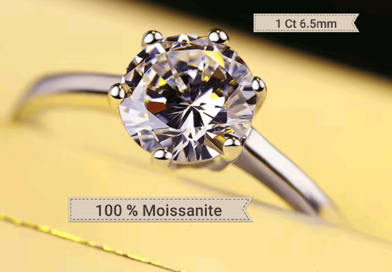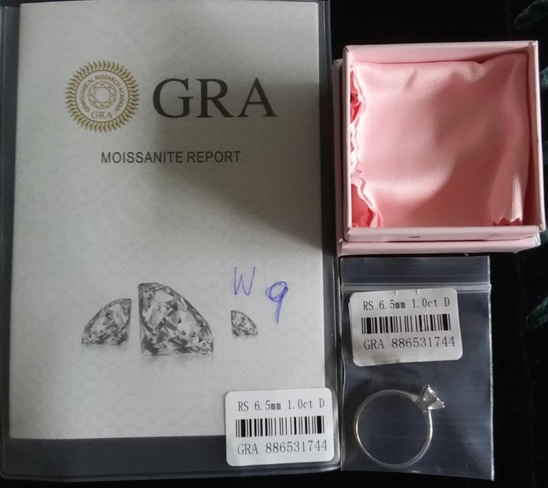 GRA CERTIFIED MOISSANITE 1CT ENGAGEMENT RING SIZE 9 , 925 SILVER