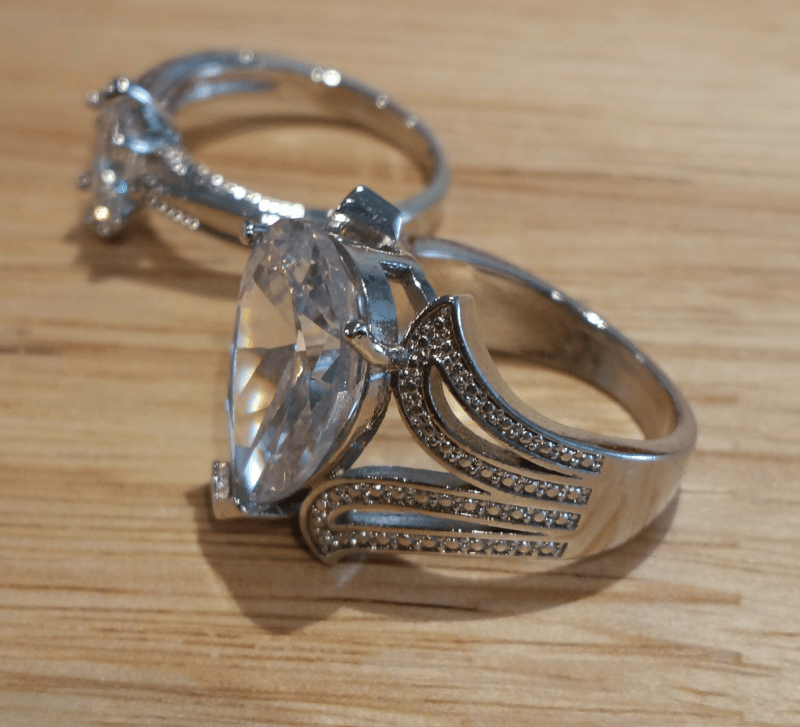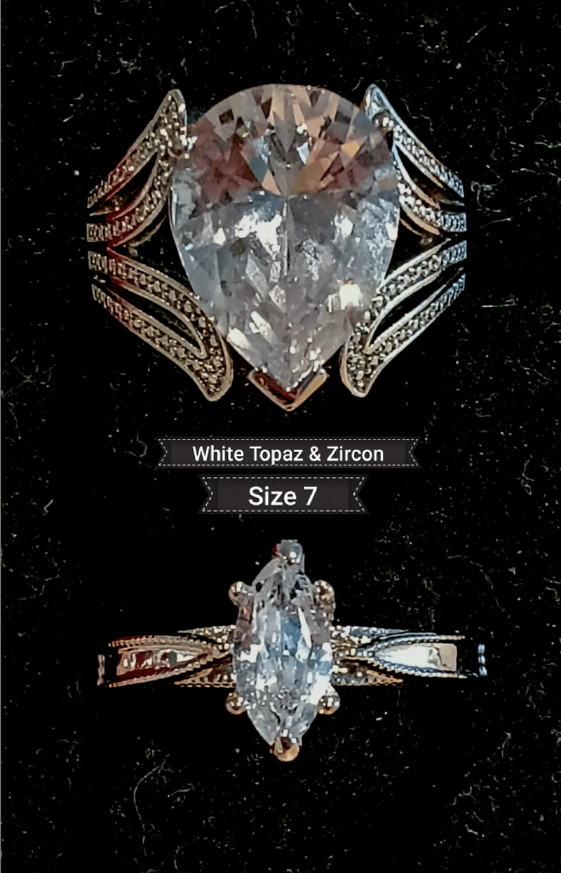 2 X SILVER RINGS WITH WHITE TOPAZ AND CUBIC ZIRCONIA SIZE 7