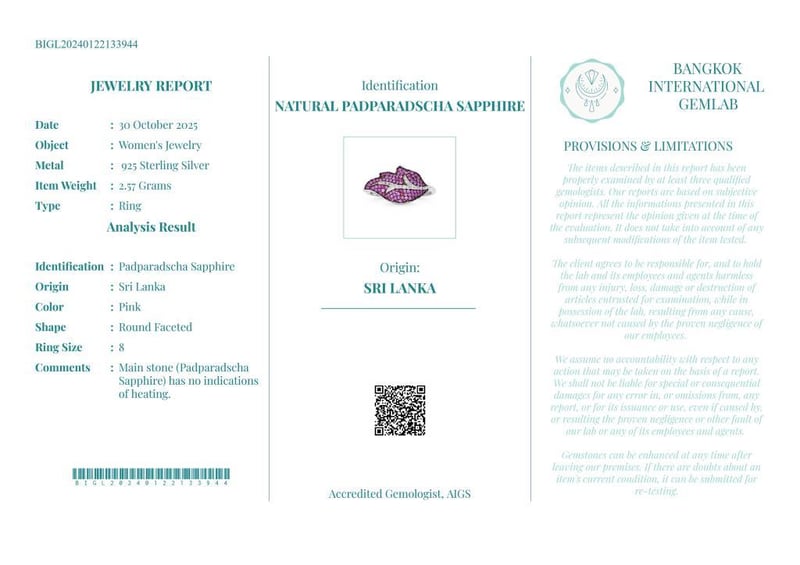 Comments : Main Stone (Padparadscha Sapphire) Has No Indications Of Heating.