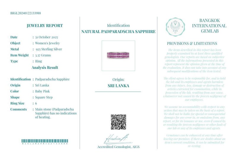 Comments : Main Stone (Padparadscha Sapphire) Has No Indications Of Heating.