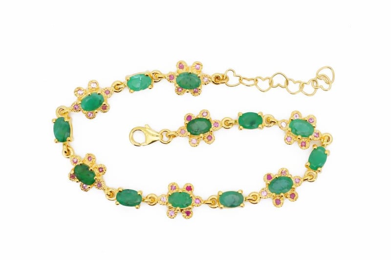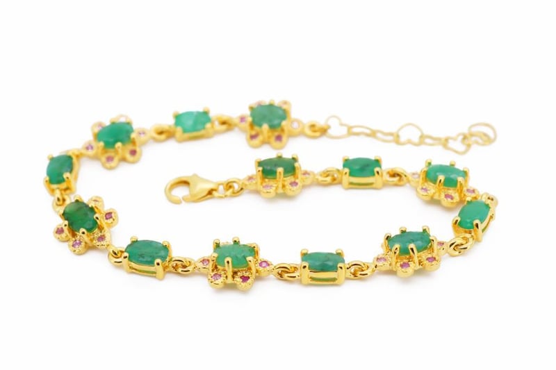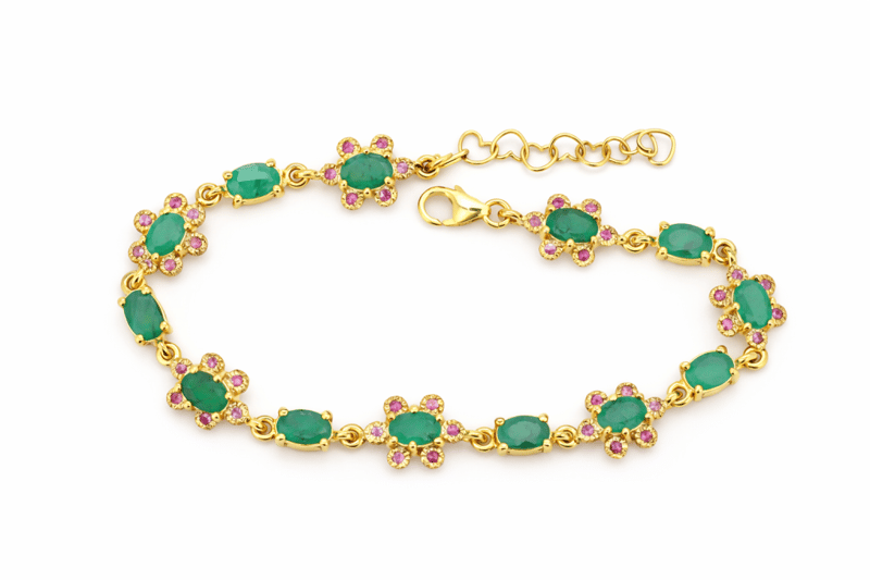 NATURAL EMERALD & PADPARADSCHA SAPPHIRE BRACELET ON 925 SILVER - WITH CERTIFICATE