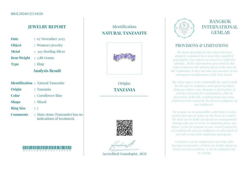 Comments : Main Stone (Tanzanite) Has No Indications Of Treatment.