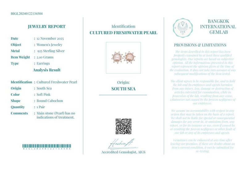 Comments : Main Stone (Pearl) Has No Indications Of Treatment.