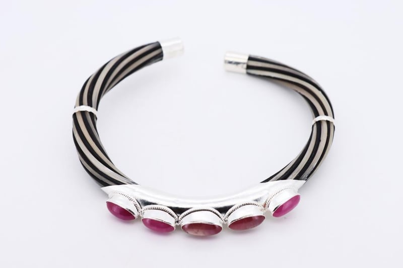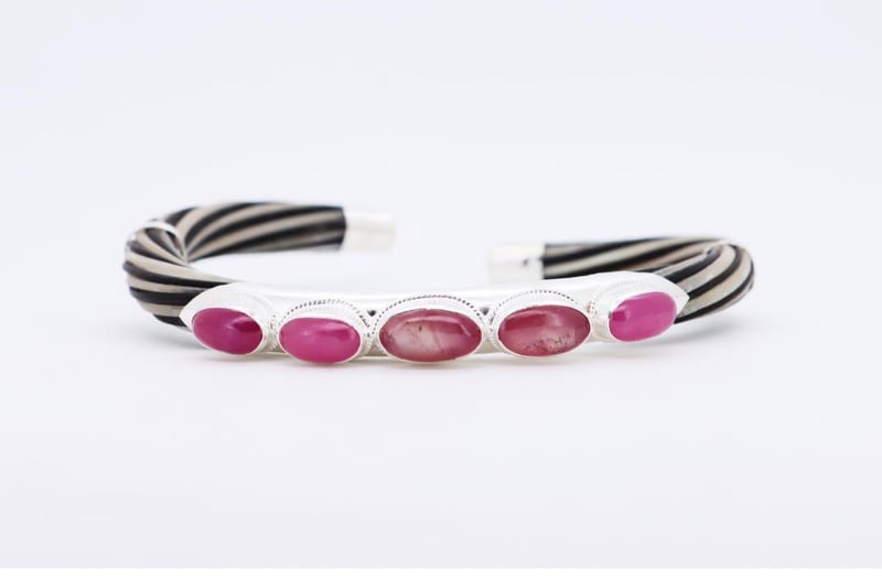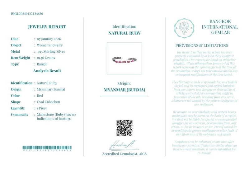 NATURAL BURMESE RUBY BANGLE ON 925 SILVER - WITH CERTIFICATE