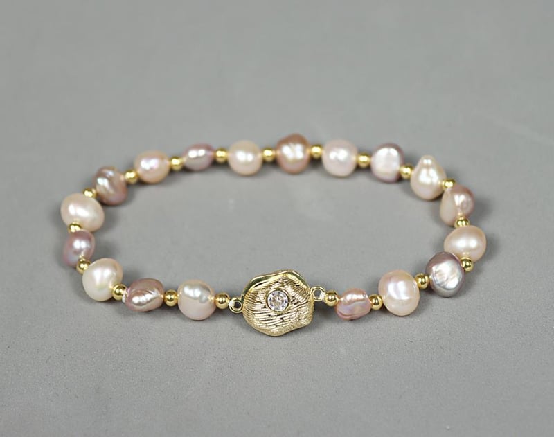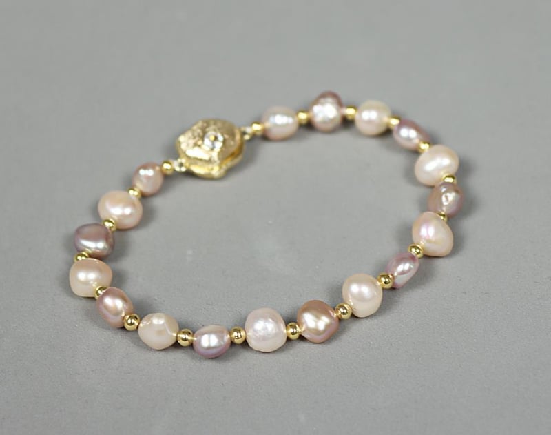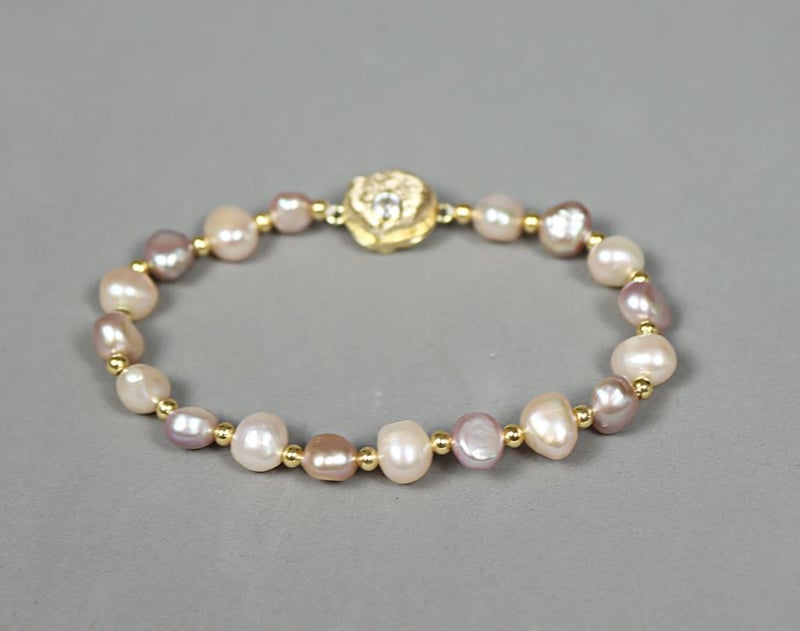 FRESHWATER PEARL ON 925 SILVER BEADS BRACELET - ORANGE & PINK