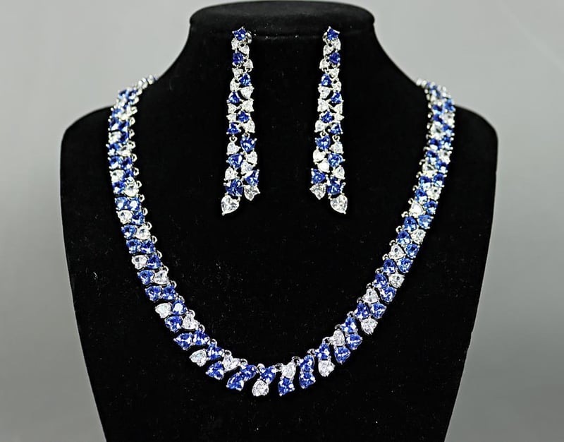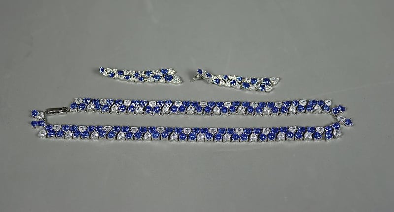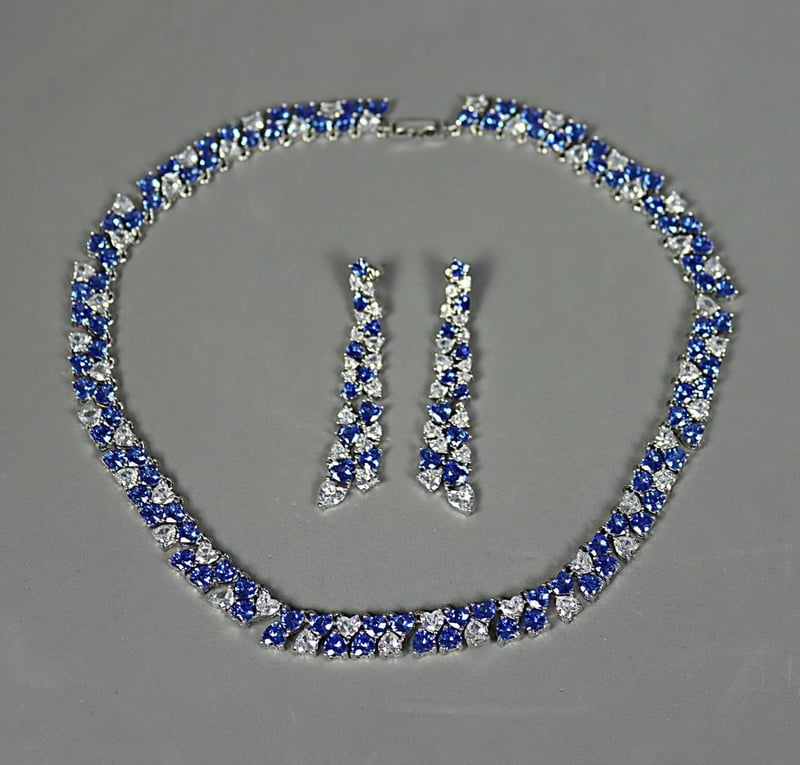 925 STERLING SILVER TENNIS NECKLACE & EARRINGS - CORNFLOWER