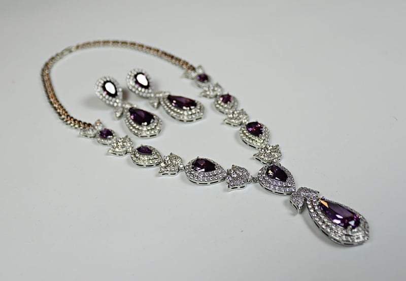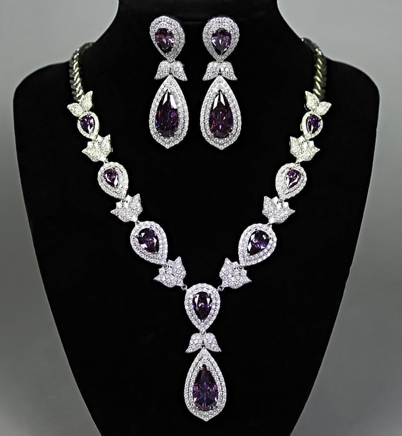 925 STERLING SILVER NECKLACE & EARRINGS - PURPLE