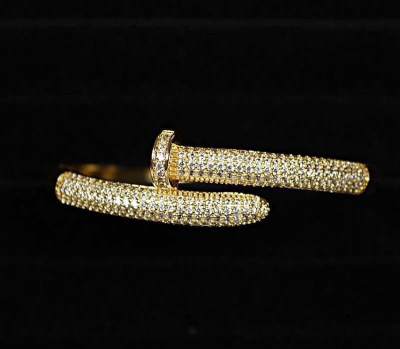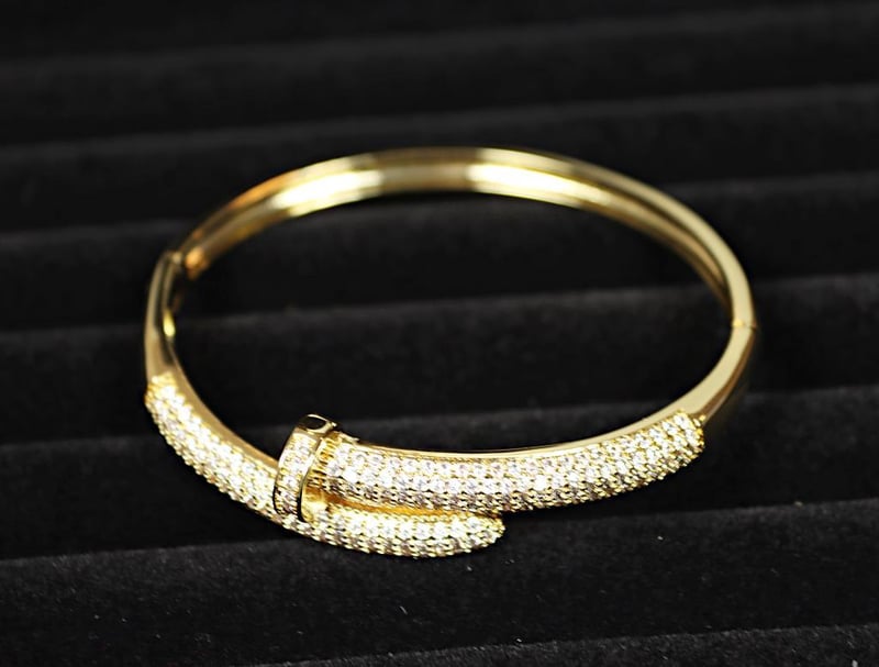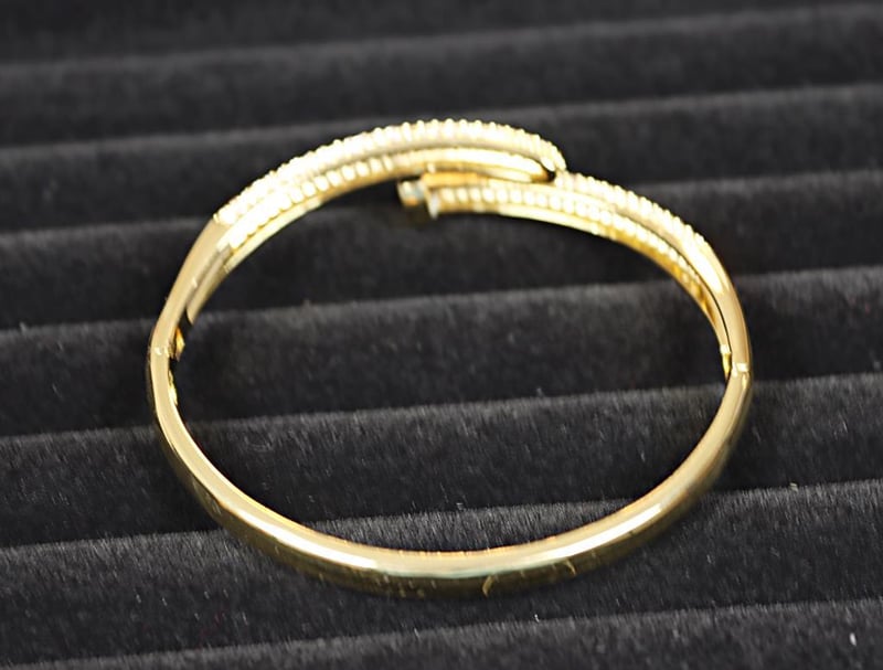 CUBIC ZIRCONIA ON 925 STERLING SILVER CUFF BANGLE - WHITE