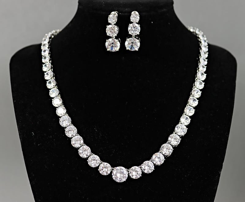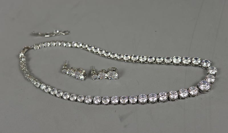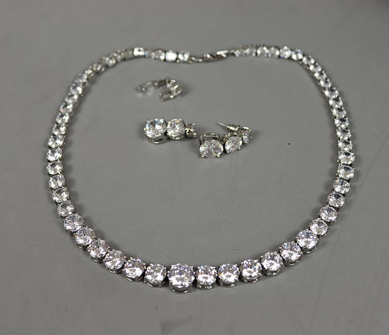 CUBIC ZIRCONIA ON 925 STERLING SILVER TENNIS NECKLACE & EARRINGS - WHITE