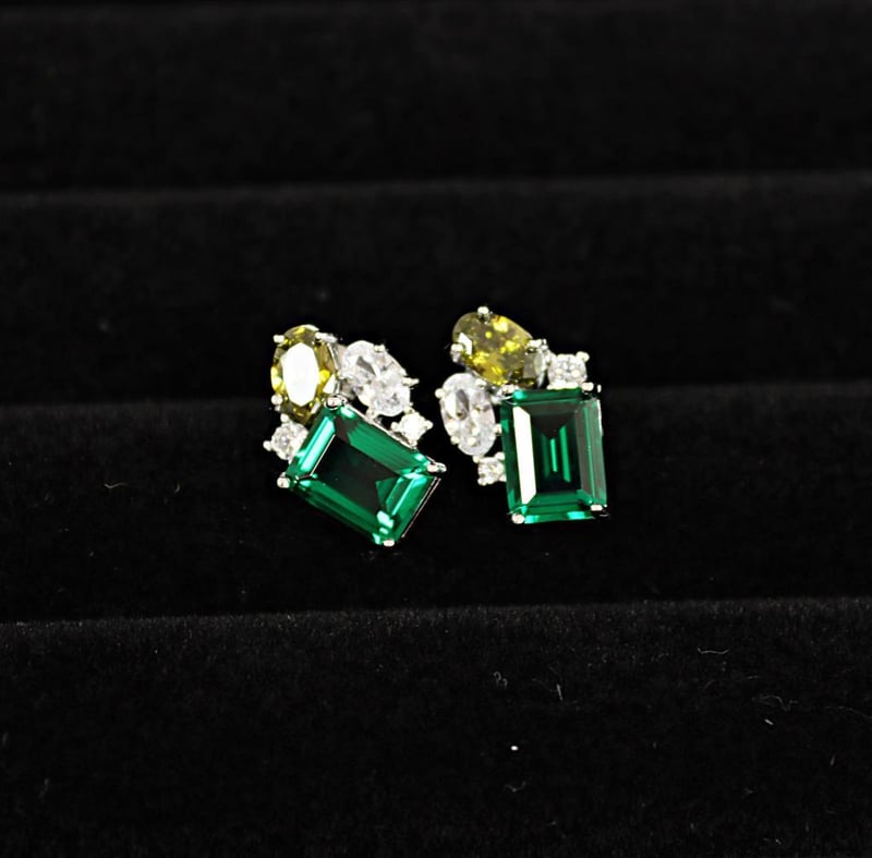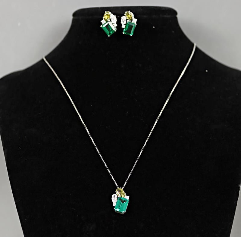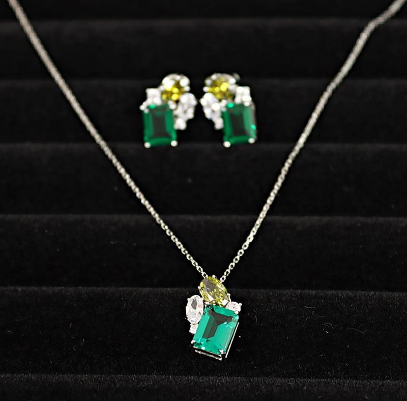 925 STERLING SILVER NECKLACE & STUDS - GREEN