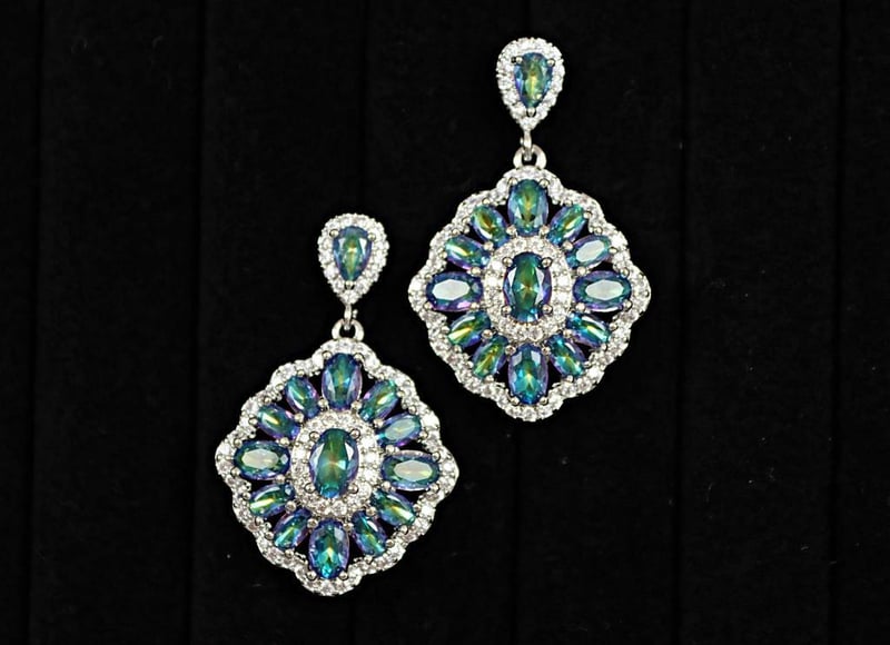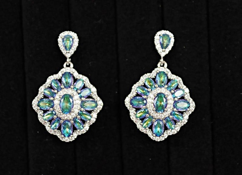 MYSTIC TOPAZ ON 925 STERLING SILVER EARRINGS - IRIDESCENT