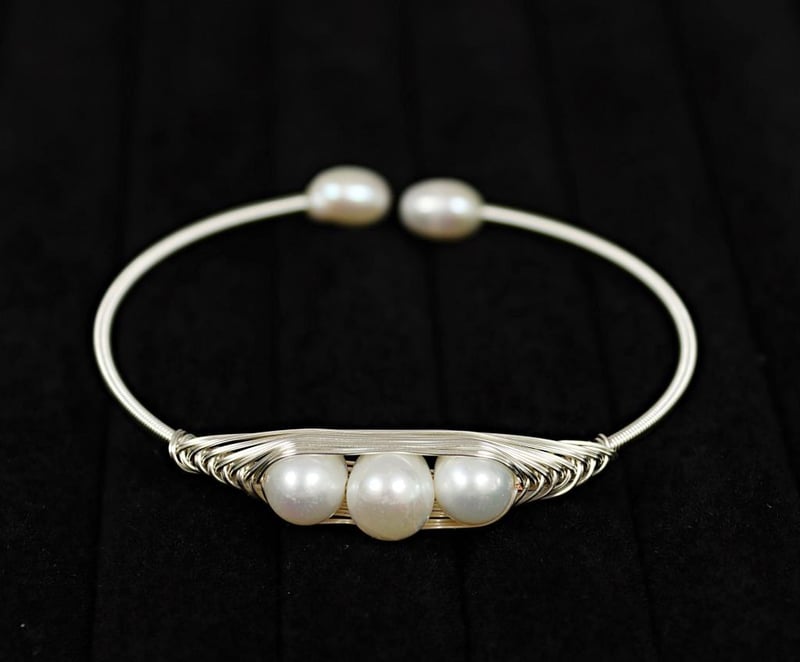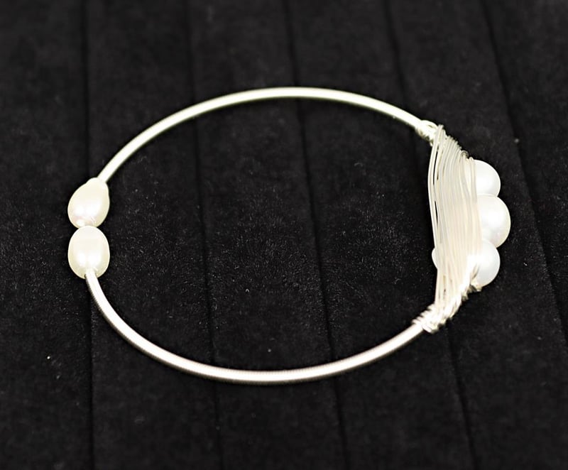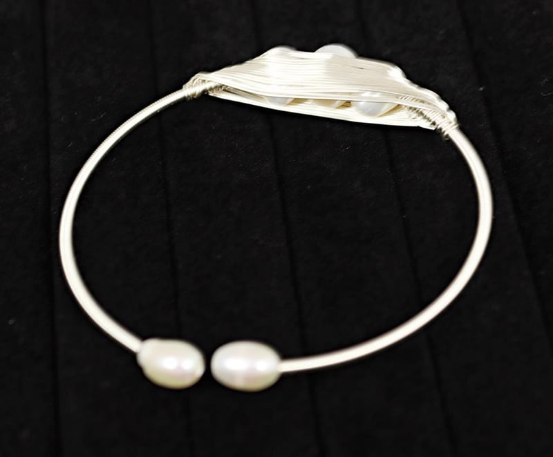 FRESHWATER PEARL ON 925 STERLING SILVER CUFF BANGLE - WHITE