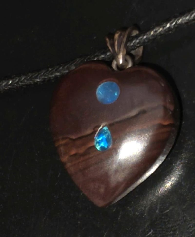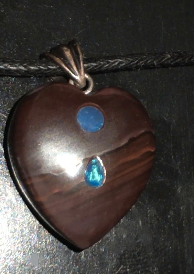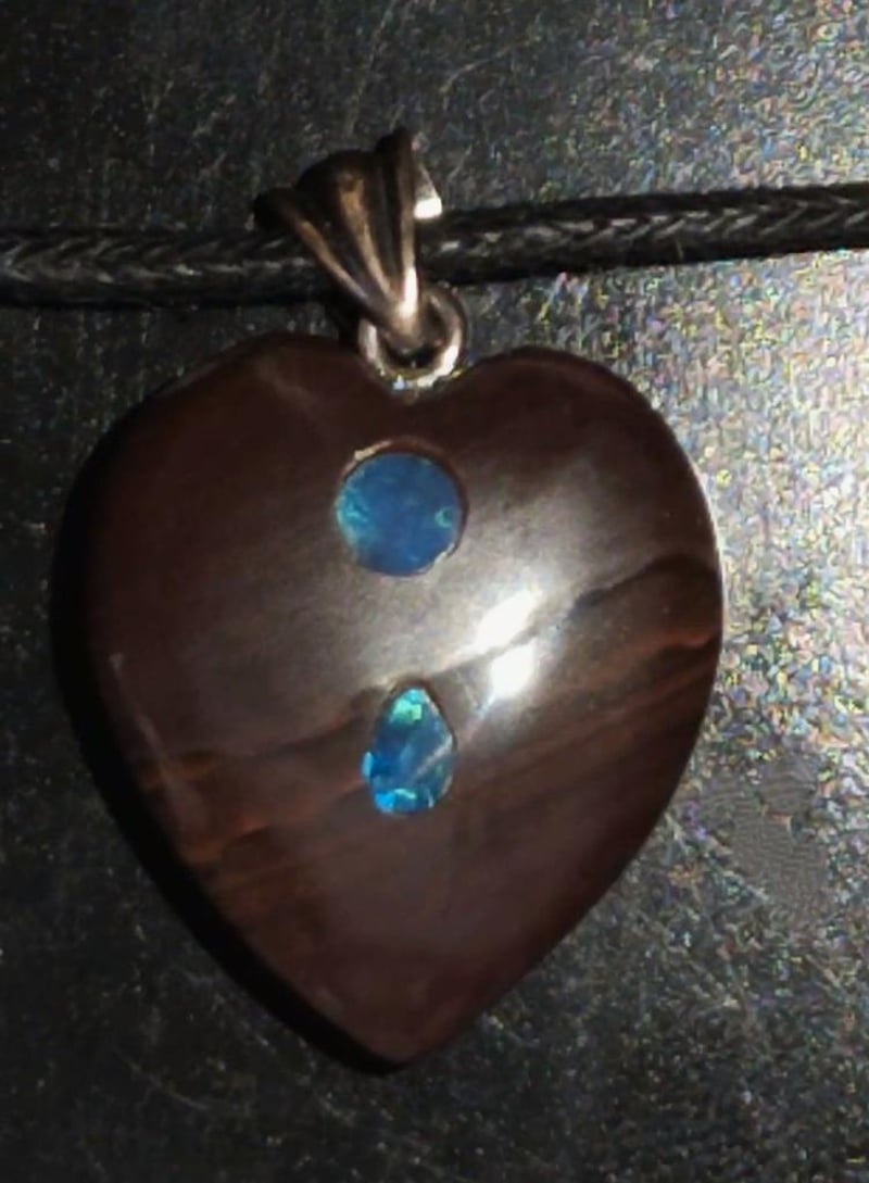 38 CARATS WINTON BOULDER OPAL AND INLAID COOBER PEDY OPAL CORDED HEART LOCKET